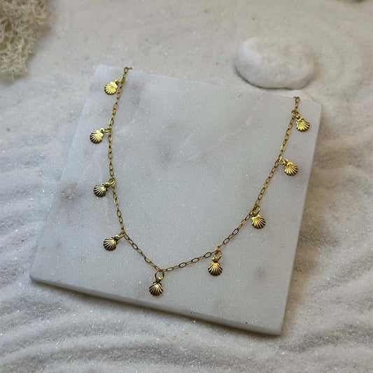 Des coquillages délicats, des étoiles de mer, des reflets nacrés et des touches de turquoise : un univers marin doux et poétique, entre rêve et élégance.